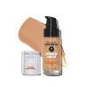 Base líquida de média a alta cobertura, com toque aveludado, bico dosador, livre de óleo e FPS BROAD SPECTRUM fator 15.