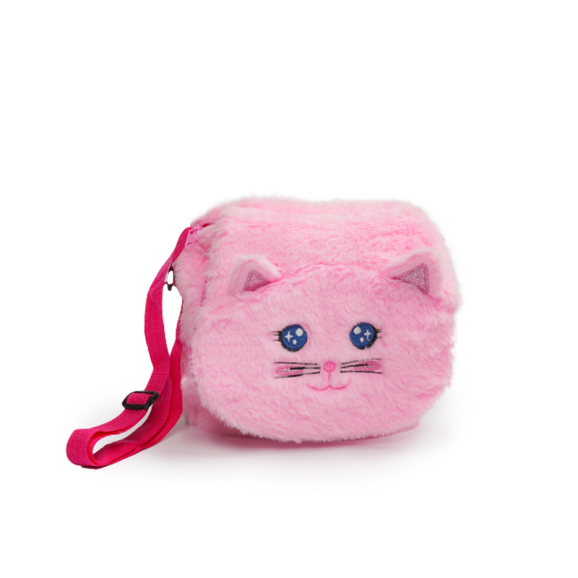 Bolsa Escolar Pelúcia Gatinho Rosa
