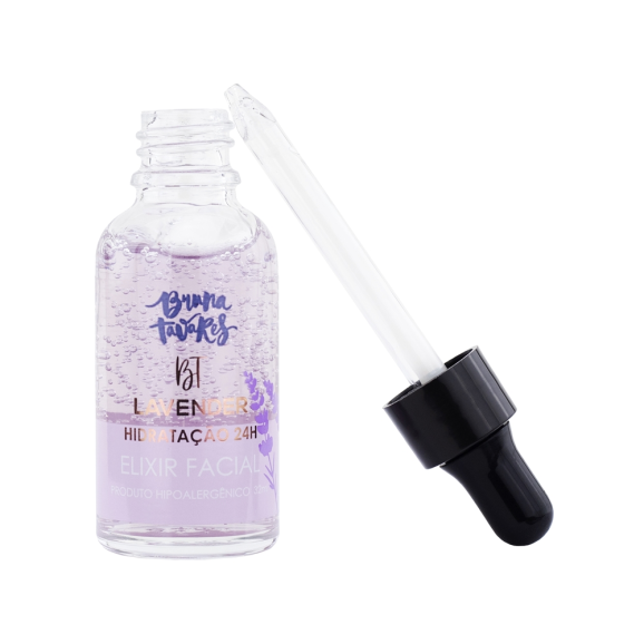 O Elixir Facial BT Lavender proporciona hidratação prolongada por até 24h. É indicado para todos os tipos de pele, e principalmente para pele sensível.