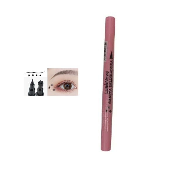 Com seu design exclusivo de 2 em 1. A caneta possui uma ponta de carimbo Estrela, e uma ponta de delineador para finalizar o traço rente aos cílios.