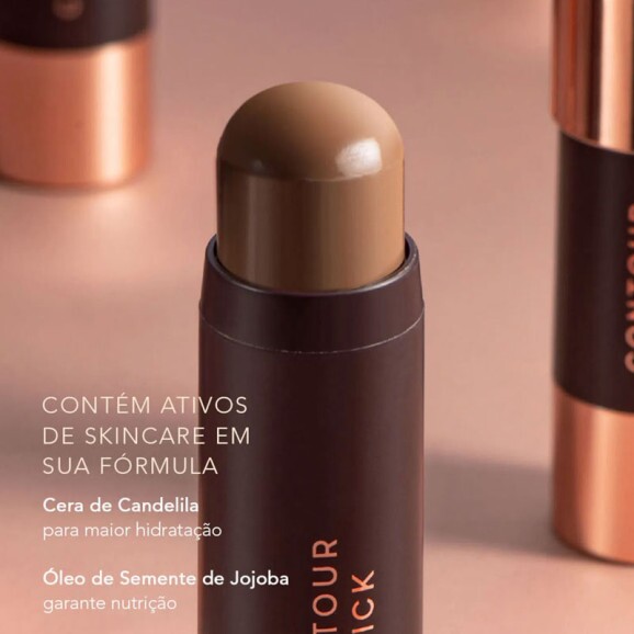 Por isso, o novo Contour Stick foi desenvolvido para ajudar as mulheres nesta tarefa de contornar o rosto com um produto prático e versátil, ideal para uso no dia a dia. Sua aplicação é fácil e o acabamento matte ficam super naturais no rosto. Com textura cremosa, este bastão de contorno facial é altamente pigmentado, perfeito para definir ou disfarçar as feições do rosto sem pesar na make.