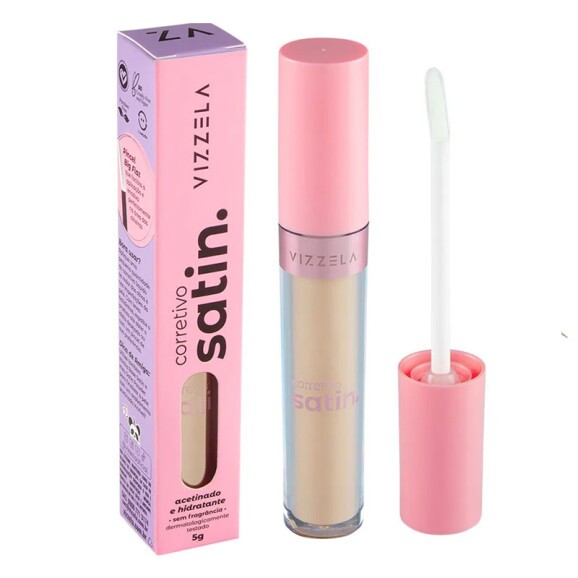 O Corretivo Satin possui um acabamento acetinado com alta cobertura, deixando a pele com um toque de radiancia devido ao ativo Gatuline Radiance®, além da hidratação instantânea promovida pela combinação de ácido hialurônico e biosacarídeo. E a rosa mosqueta que auxilia no tratamento das olheiras.