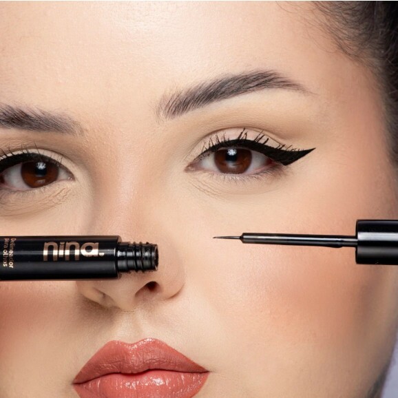 Agite bem antes de usar e aplique o delineador do canto interno ao canto externo do olho.