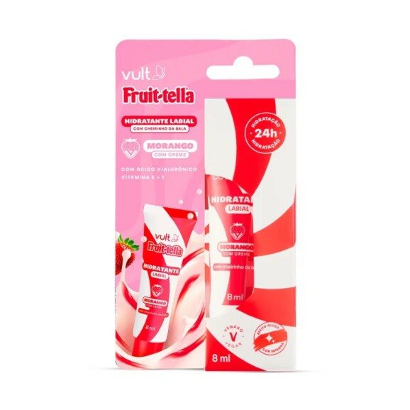 Apresentamos o resultado dessa parceria deliciosa: o Hidratante Labial Vult&Fruit-tella® Morango com Creme! Sua fórmula vegana e cruelty free, com o cheirinho irresistível das balas Fruit-tella®, proporciona 24 horas de hidratação, deixando seus lábios macios e com um lindo efeito gloss.