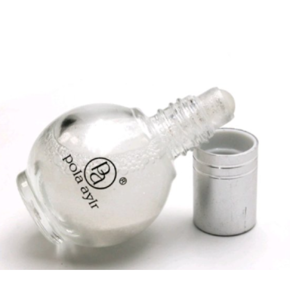 Iluminador líquido branco/prata com fixador, fixação intensa, brilho sem fundo de cor, pode usar como sombra ou iluminador facial e corporal. Embalagem com aplicador rollon.
