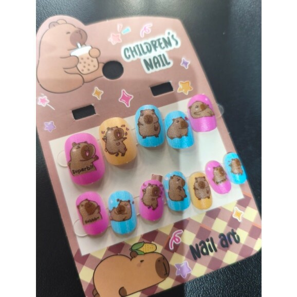 Kit com 12 Unhas Postiças Kids Autocolantes Capivara