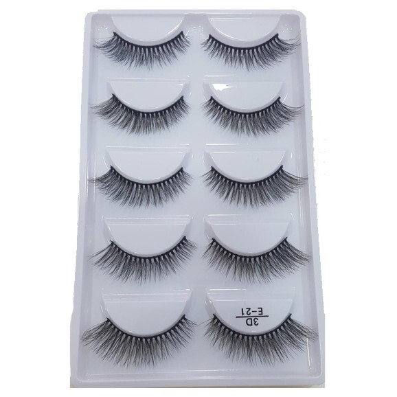 Kit com 5 Pares de Cílios Postiços 3D E21