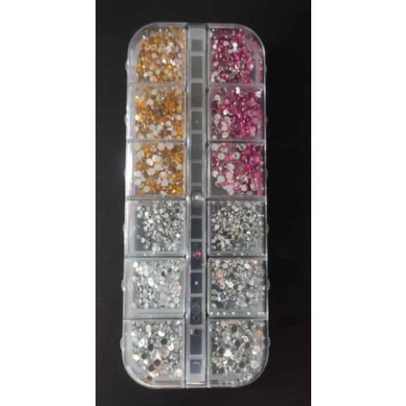 12 cores e tamanhos de STRASS para maquiagens e unhas.