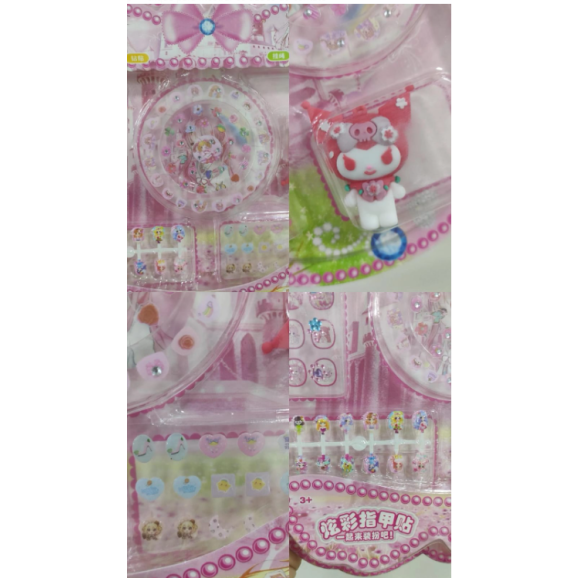 O kit mais completo e fofo da amiga da Hello Kitty , a Kuromi. O Kit conta com uma Kuromi grande e uma alça para a criança confeccionar seu próprio chaveiro ou piercing de celular, 12 unhas postiças tamanho infantil com fita autocolante, 8 adesivos de strass para colar no rosto ou unhas, 24 pares de brincos adesivos com personagens e cores muitos fofos e mais 49 peliculas de unhas que devem ser coladas com o esmaltes incolor.