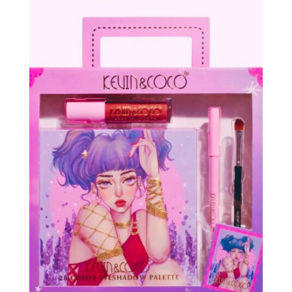 Kit Paleta de Sombra 28 Cores Batom Delineador e Pincel Kevin&Coco