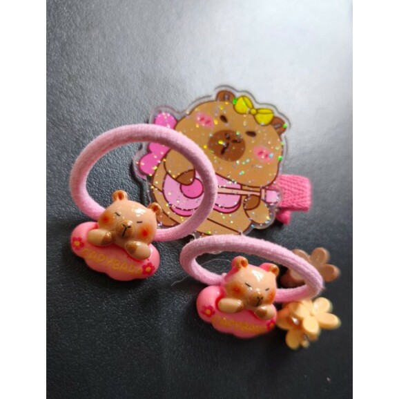 Presilha grande, 2 rabicós de capivara e 2 mini piranhas de flor.