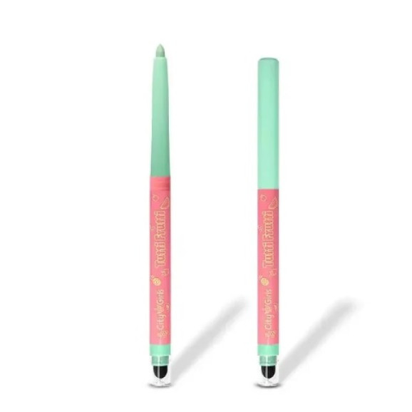Tutti Frutti é a lapiseira delineadora fofa que reune todas as frutas preferidas da City! Quem é que não ama o frescor que as frutas nos trazem? É essa a proposta das lapiseiras Tutti Frutti que possuem cores lindíssimas, bem coloridinhas e alto astral para deixar seu dia mais divertido e alegre! São 6 opções de cores, com tonalidades mais pasteis super fofas, para você ousar e criar delineados, esfumados ou o que mais sua imaginação permitir! As lapiseiras entregam muita pigmentação e cor logo na primeira aplicação, ótima durabilidade, além de serem muito macias e fáceis de esfumar com os dedos ou com um pincel, graças ao óleo de coco em sua composição! A espessura da lapiseira é bem fininha para que você possa criar desde traços delicados até os mais ousados!