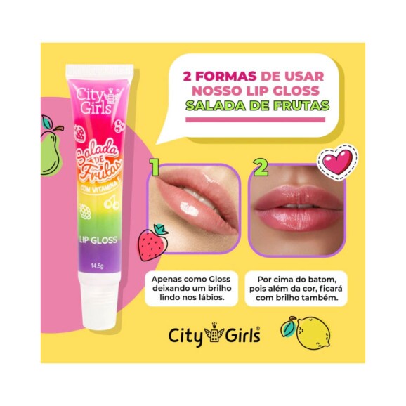 Chegou o lip gloss salada de fruta da city girls para hidratar e deixar seus lábios macios e bonitos.