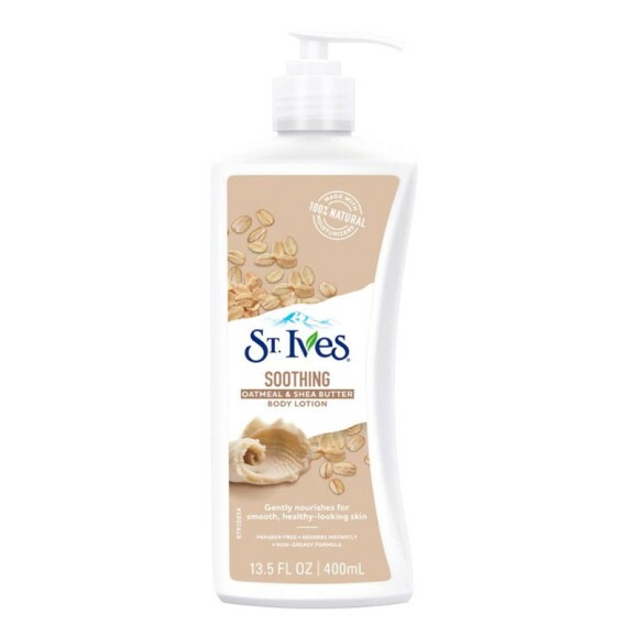 Indicado para uso diário, o creme hidratante corporal Soothing Oatmeal and Shea Butter da St. Ives é uma combinação de extrato de aveia e manteiga de Karité, é rapidamente absorvida pela pele e trás uma sensação de maciês e conforto nas áreas ressecadas.