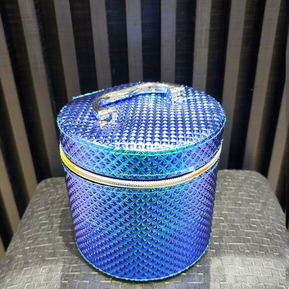 Material: Revestimento couro sintético holográfico. Interior revestido com tnt.