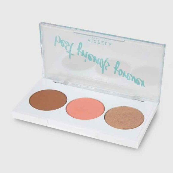 Paleta de maquiagem com blush, contorno e iluminador. Versátil, Vizzela Cosméticos BFF Best Friends Foreveré perfeita para criar uma make poderosa com praticidade.