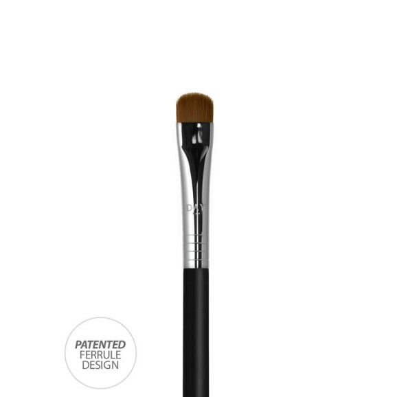 Pincel de alta precisão, perfeito na utilização para técnica cut crease, ideal também para esfumar linha d'água. Cerdas sintéticas micronizadas DAYTECH Soft Fibers, cabo de madeira com ponteira em cobre prata.