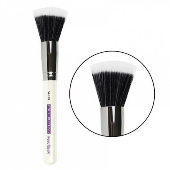 Pincel Profissional Duo Fiber para aplicação de base ou produtos líquidos e cremosos, linha White da Macrilan.
