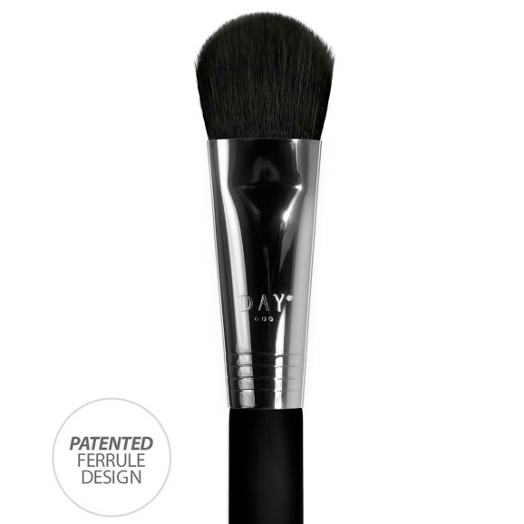 Ideal para contorno, iluminação e blush.Cerdas sintéticas micronizadas DAYTECH Soft Fibers, cabo de madeira com ponteira em cobre prata.