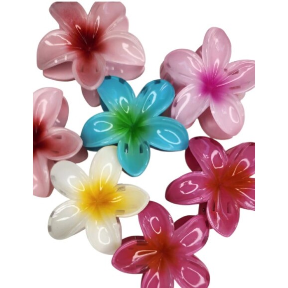 Presilha tipo piranha com design de flor tropical em acrílico, com cores vibrantes que destacam qualquer penteado. Modelo tamanho G com 7 cm de comprimento, ideal para cabelos volumosos ou penteados semi-presos. Leve, resistente e com acabamento detalhado, é perfeita para quem procura estilo e praticidade no dia a dia ou em ocasiões especiais.