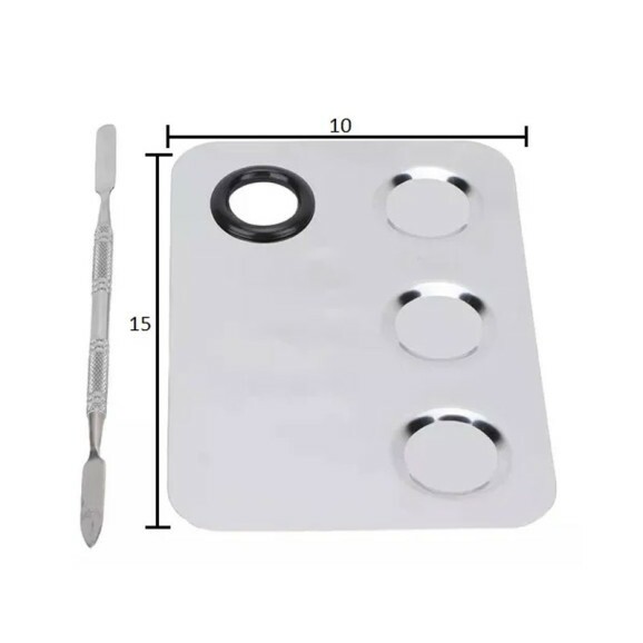 Placa com Espátula Em Aço Inox Para Maquiagem