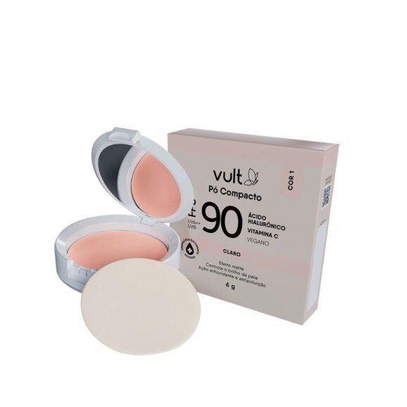 O Pó Compacto Facial Claro Cor 1 FPS 90 Vult era o que faltava na sua rotina para finalizar e retocar a make com precisão, proteção e beleza.