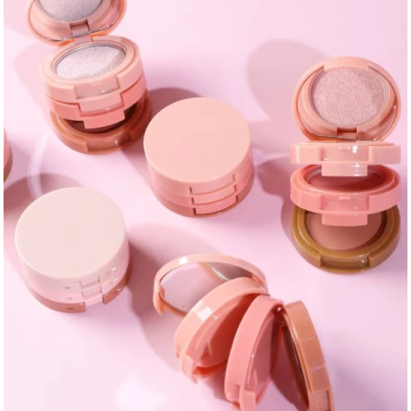Trio Iluminador, blush e contorno Bobbi Rara. Praticidade em um produto só. Cor 01